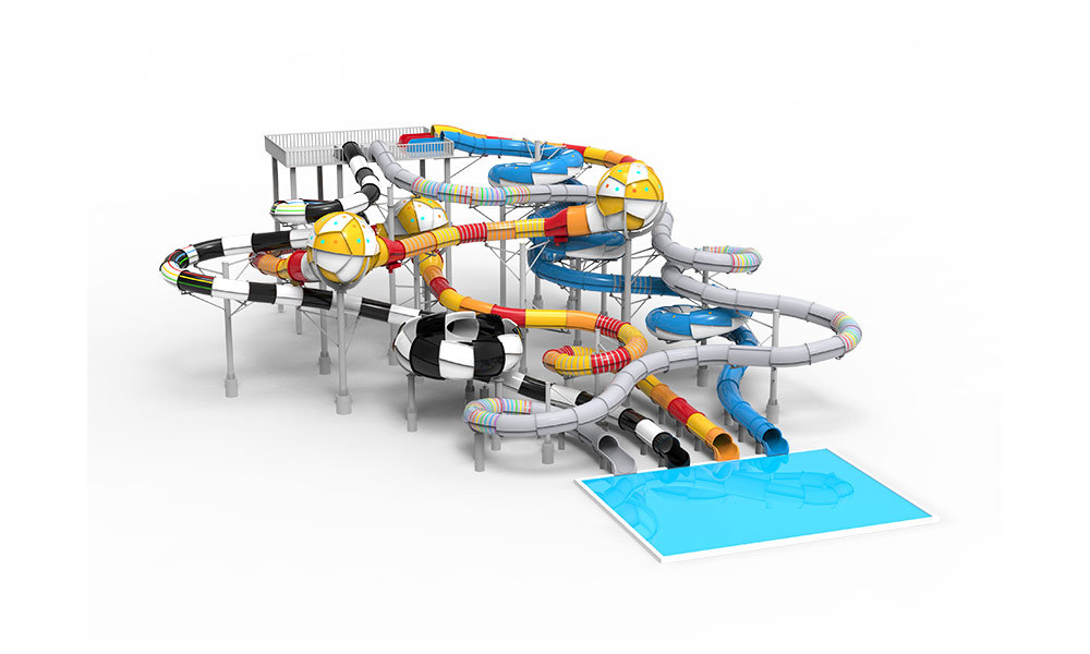 Whirlwind Water Slide is an improvement on the big tourbillion slide commonly seen in water parks. It has a unique shape. Passengers ride on rafts and swing back and forth in the horn, like a lonely boat swinging left and right in the waves. When passengers ride on rafts from the starting section of the starting machine, they accelerate through the acceleration section, reach the spiral section, feel the sliding fun generated by centrifugal force in the spiral section, and then feel the excitement of near free fall at the cone. After the swing in the cone ends, they finally rush to the tail slot.