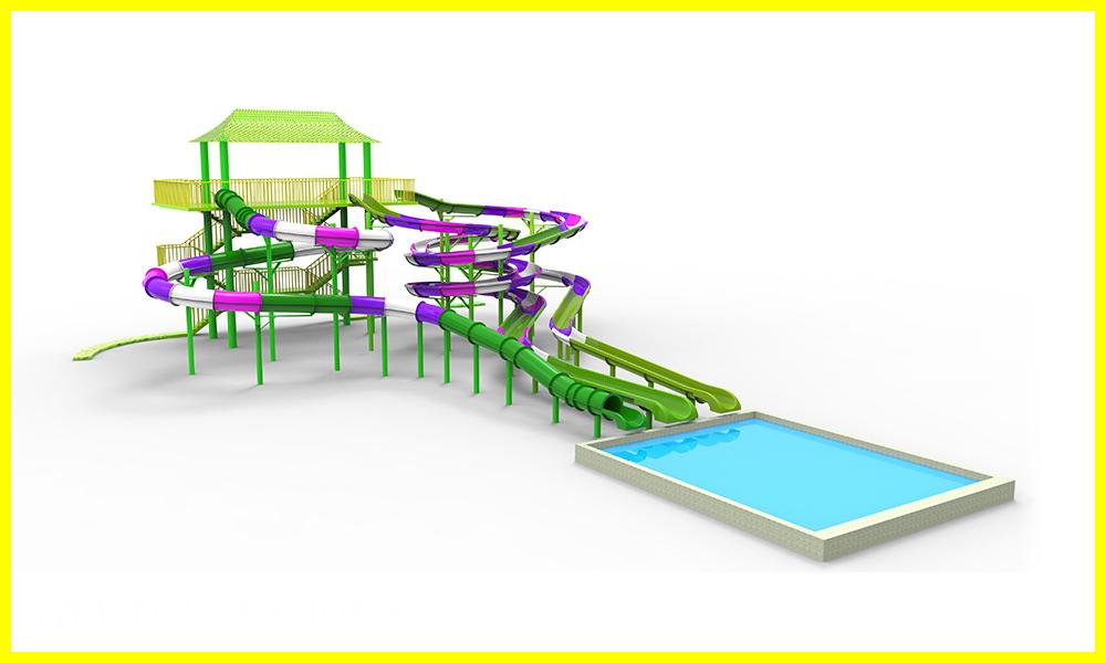 As the core of the competition, the rainbow water multi-slide is the most popular amusement equipment for the young group. The slide have 3 to 8 lanes, which can provide the exciting and funny competition conditions for many people. Besides, the timing counting device strengthens the competition attribute and makes it the highest recreation rate of the single item.